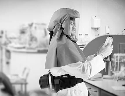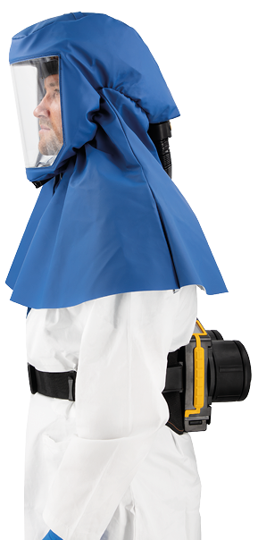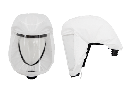 In Verbindung mit einer Luftquelle (Atemschutzgebläse oder Druckluft-Regelventil) wird ein konstanter Überdruck innerhalb der Haube aufgebaut, wodurch ein Eindringen von Schadstoff verhindert und die höchste Schutzklasse erreicht wird. Der Luftstrom verläuft innerhalb der Haube, entlang des Visiers, sodass kein unangenehmer Luftzug oder eine unangenehme Geräuschentwicklung entsteht. Die überschüssige und verbrauchte Luft wird mittels nah am Mund positioniertem Ausatemventil abgeführt, wodurch die CO2 Konzentration minimiert und die Kommunikation erheblich verbessert wird.