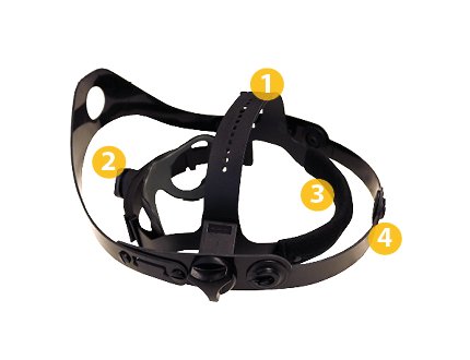 Die innovative und leichte Helmhalterung passt auf fast jeden Standard-Industriehelm und ist schnell und einfach montiert.