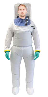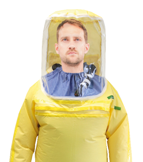 Das am Rücken getragene Atemschutzgebläse erlaubt dem Anwender eine größtmögliche Mobilität. Im Vergleich zum Tragen einer PAPR-Haube ermöglicht die Verwendung eines PAPR-Vollschutzanzugs längere Einsatzzeiten bei größerer Flexibilität und gleichbleibendem Komfort.